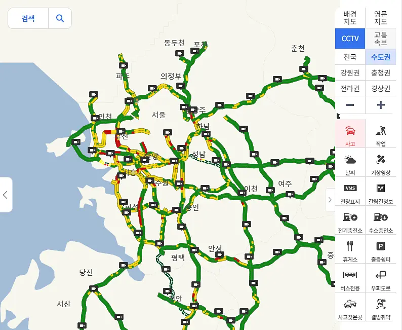 ▶ 오른쪽 선택 메뉴에서 CCTV를 클릭해서 원하는 곳의 교통흐름을 실시간으로 바로 확인할 수 있습니다.
