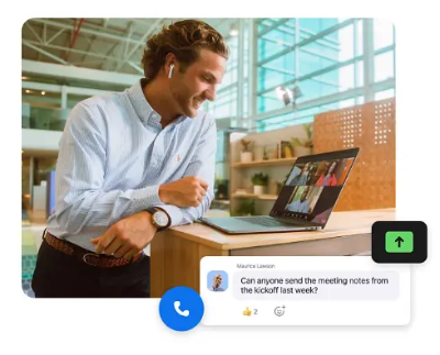 - 팀 채팅 : 그룹 채팅, 검색 가능한 이력, 파일공유 통합 및 10년간 아카이브가 지원됩니다. 1:1 또는 그룹 비디오 통화로 쉽게 전환할 수 있습니다.