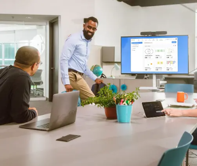 - HD오디오 및 비디오 미팅 : 가상 미팅에 HD비디오 및 오디오를 사용하고 화면에서 최대 1,000명의 비디오 참가자와 49개의 비디오를 지원합니다
